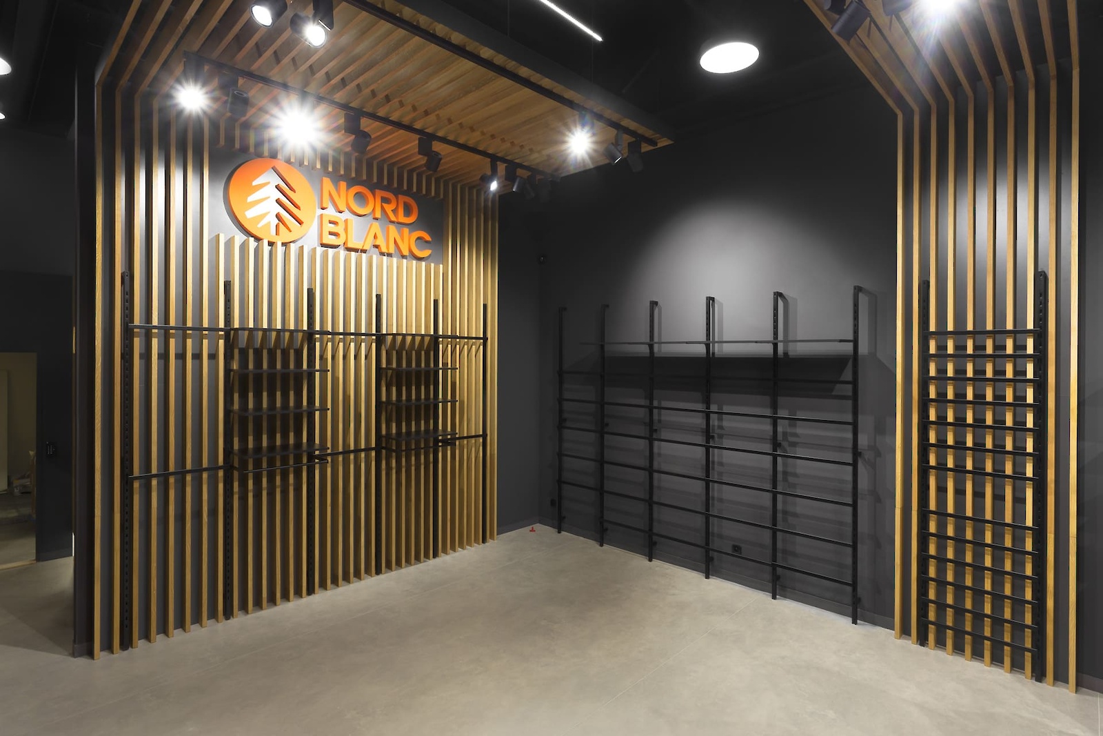 Pro nového zákazníka NordBlanc jsme na začátku roku 2018 zrekonstruovali první prodejnu v centru OC Letňany. Prodejna o velikosti 190m2 je vybavena obložením a stropními podvěsy z dubové dýhy. Pro zavěšení oblečení slouží atypický kovový regálový systém. Součástí dodávky bylo nové SDK příčky, vinylová podlaha, výmalba, elektroinstalace a dodávka nábytku. Potřebujete vybavit svou prodejnu nábytkem na míru? Ozvěte se nám a my vám s vybavením prodejny pomůžeme!